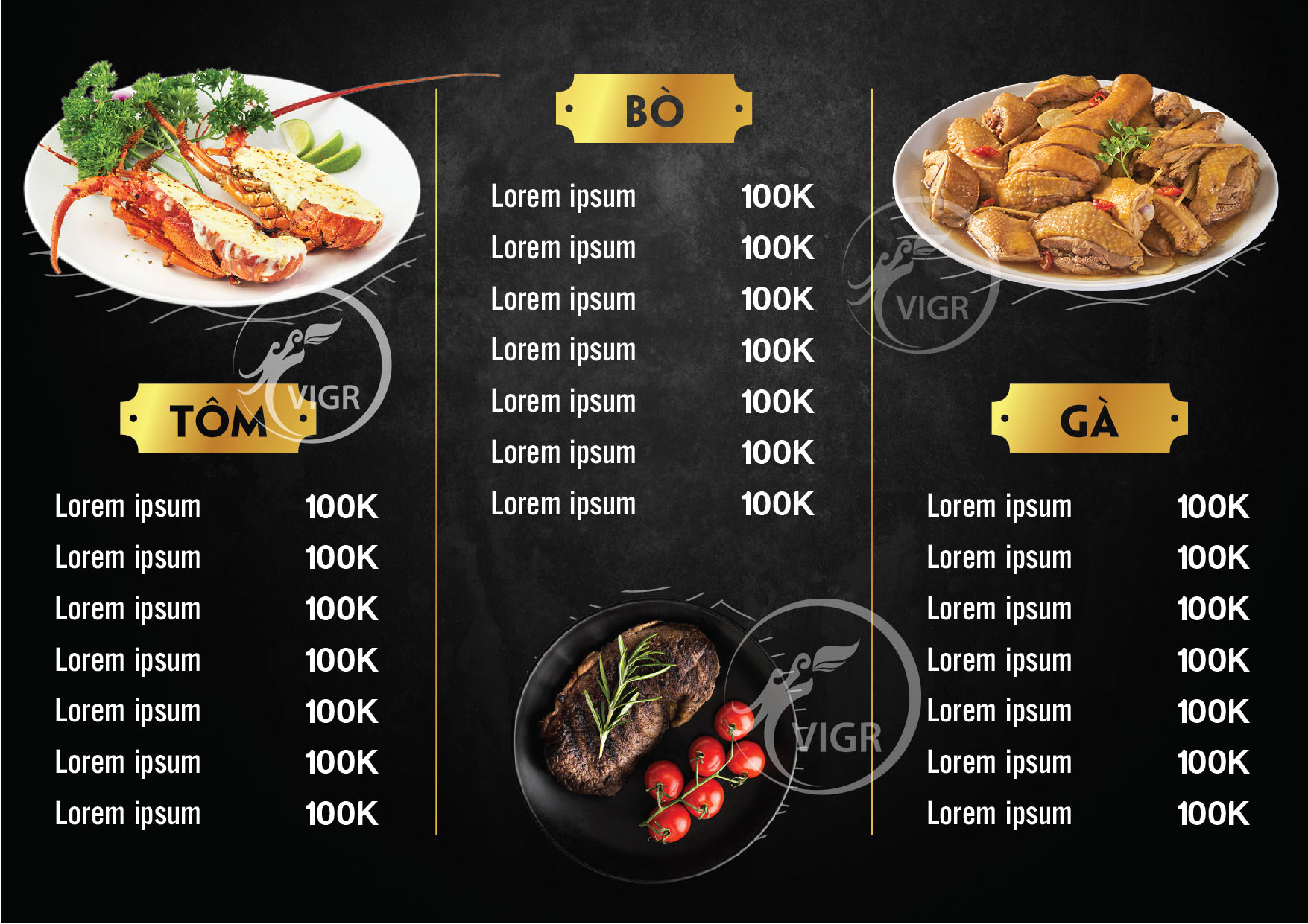 Chữ: phù hợp với phong cách nhà hàng, có thể cùng font với bộ nhận diện thương hiệu