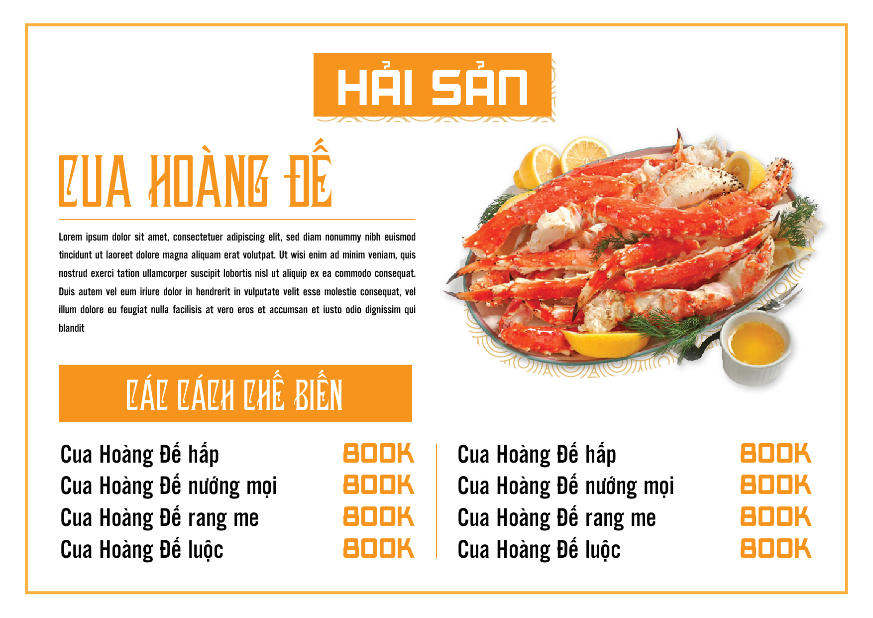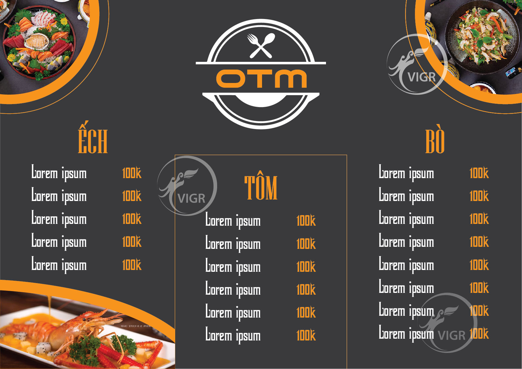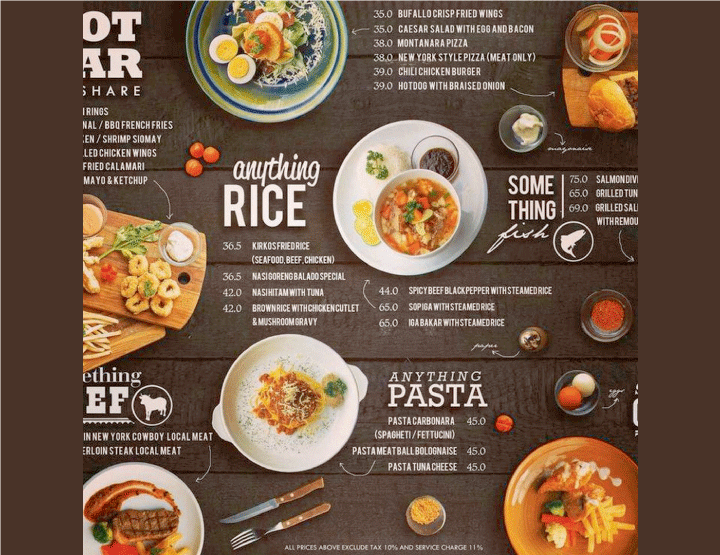 Chữ: phù hợp với phong cách nhà hàng, có thể cùng font với bộ nhận diện thương hiệu