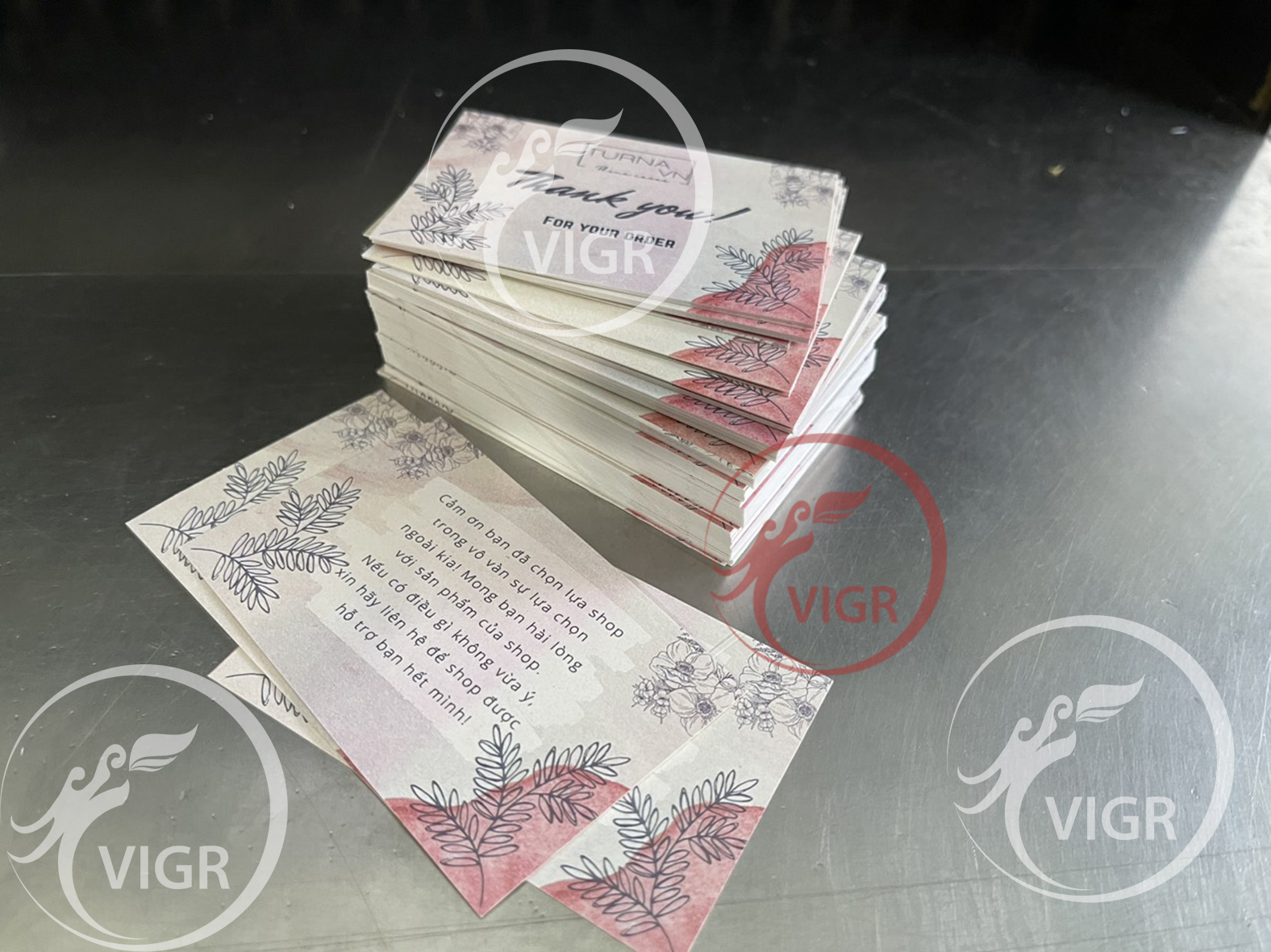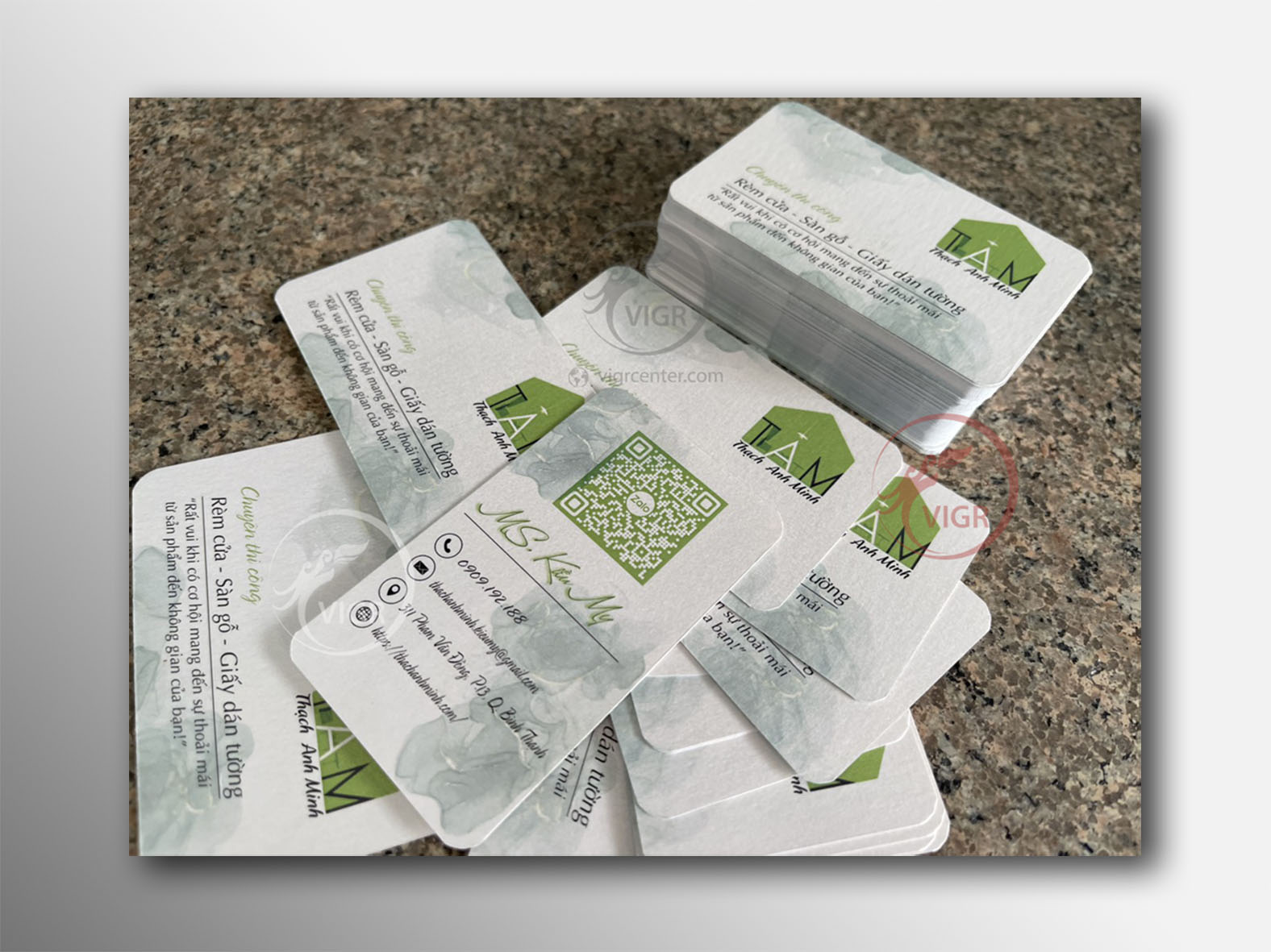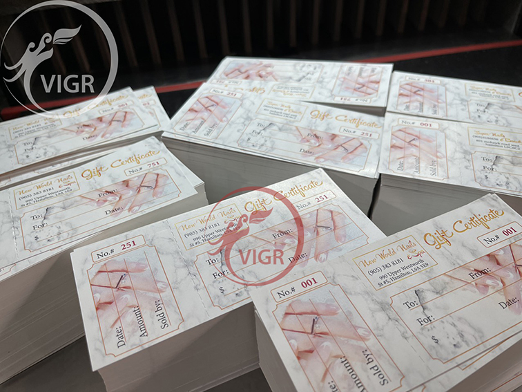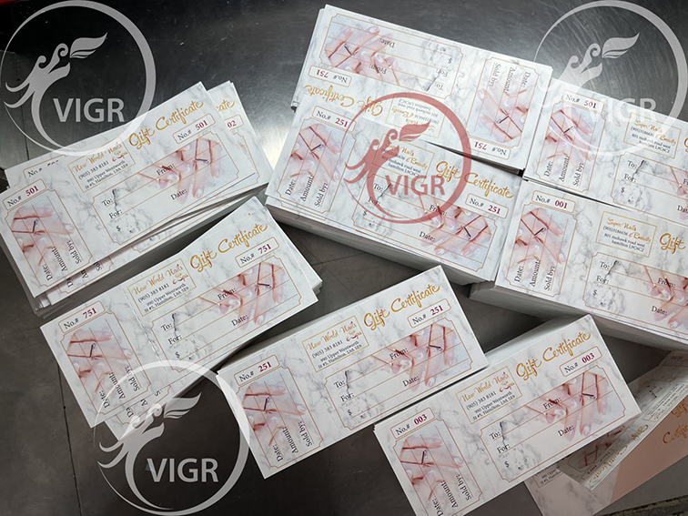 - Chất liệu giấy:  Couche 300gsm